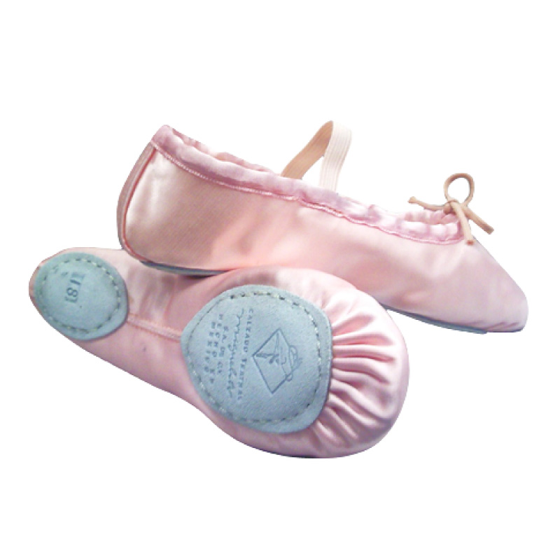Corte en raso, una sola pieza, suela split de carnaza. El raso lo hace mucho más flexible y más fresco para los pies.