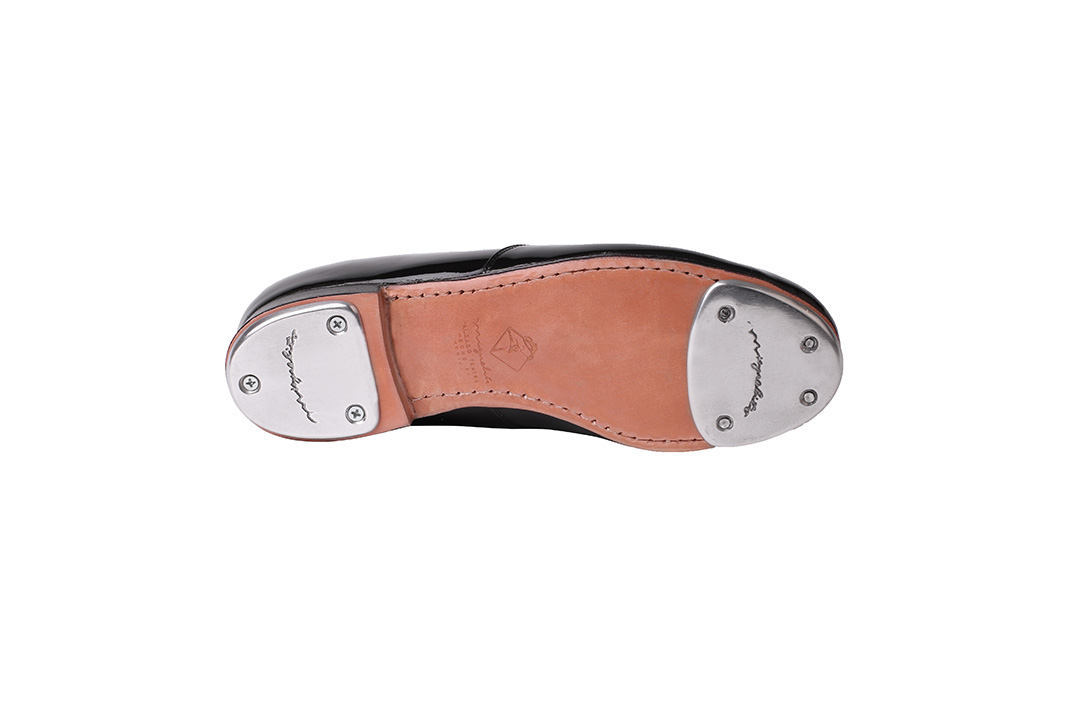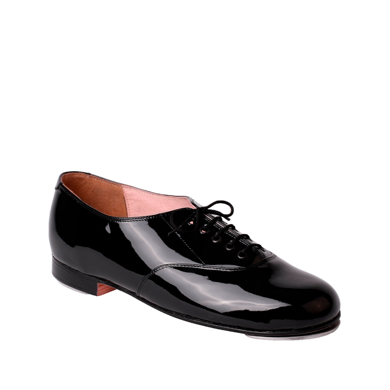 Corte de charol de piel, forro en piel y suela de cuero con tacón de tapas. No incluye taps