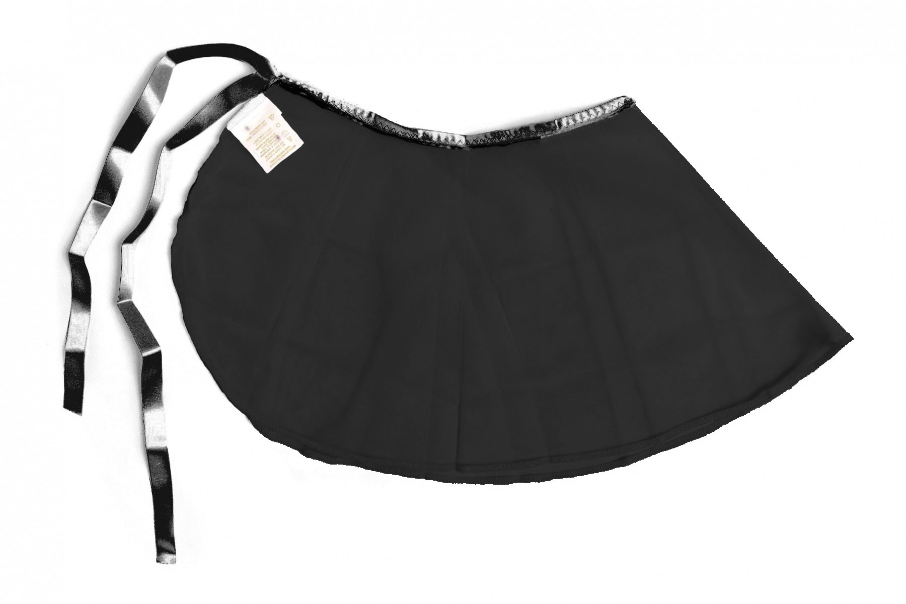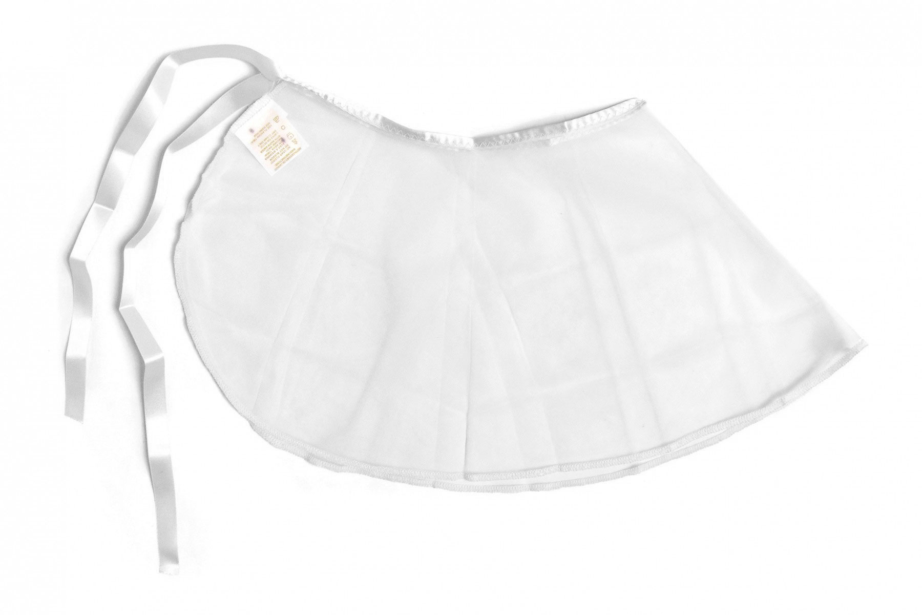 Falda corta de gasa, con listón satinado, costuras discretas en orillas. Gasa semitransparente. Diseño envolvente redondeado. Mod. FDBG902
